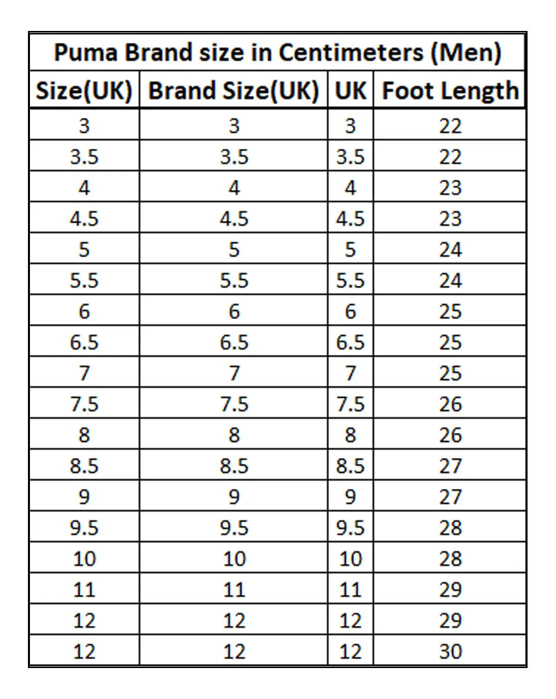 puma shoe size guide australia sale