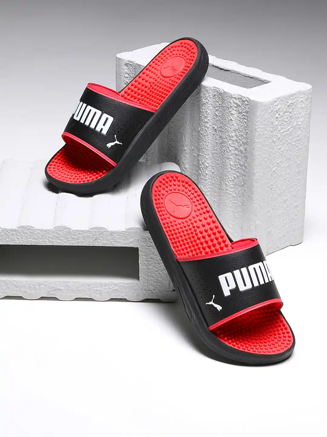 puma slides red and black sale