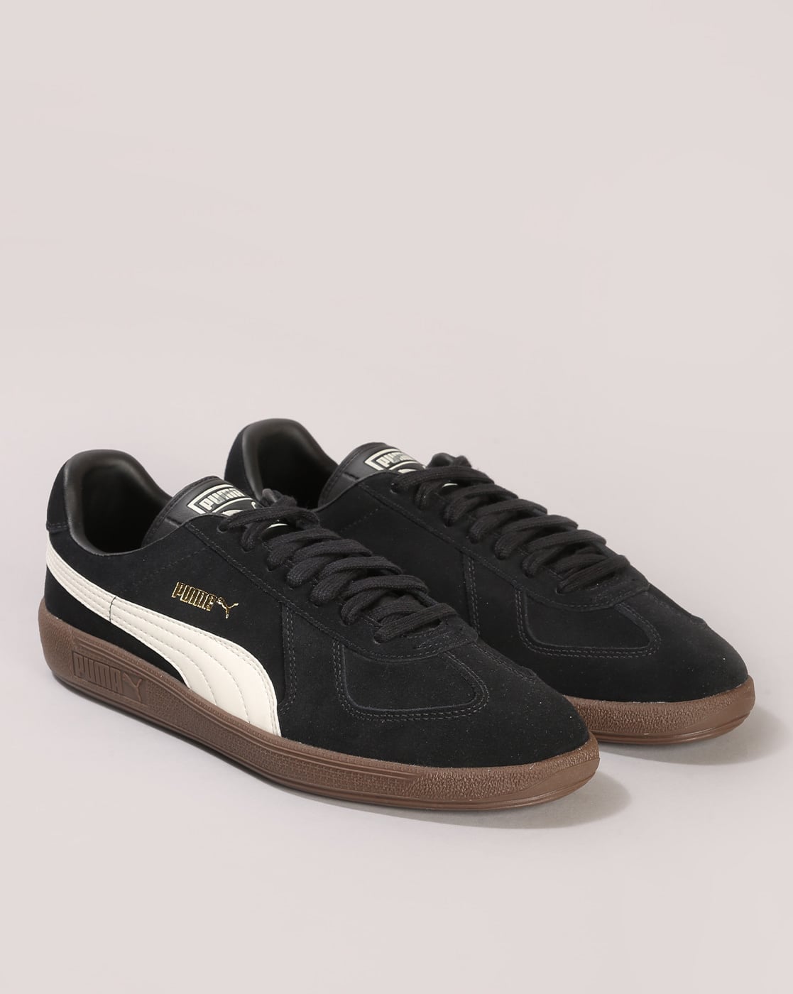 puma suede trainers in black with gum sole sale