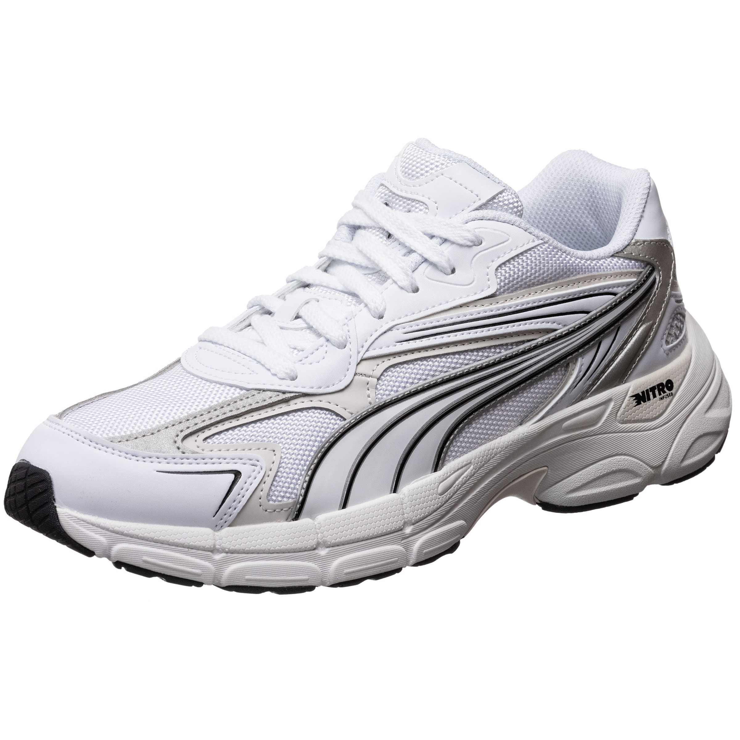 puma teveris nitro trainers in white and silver sale