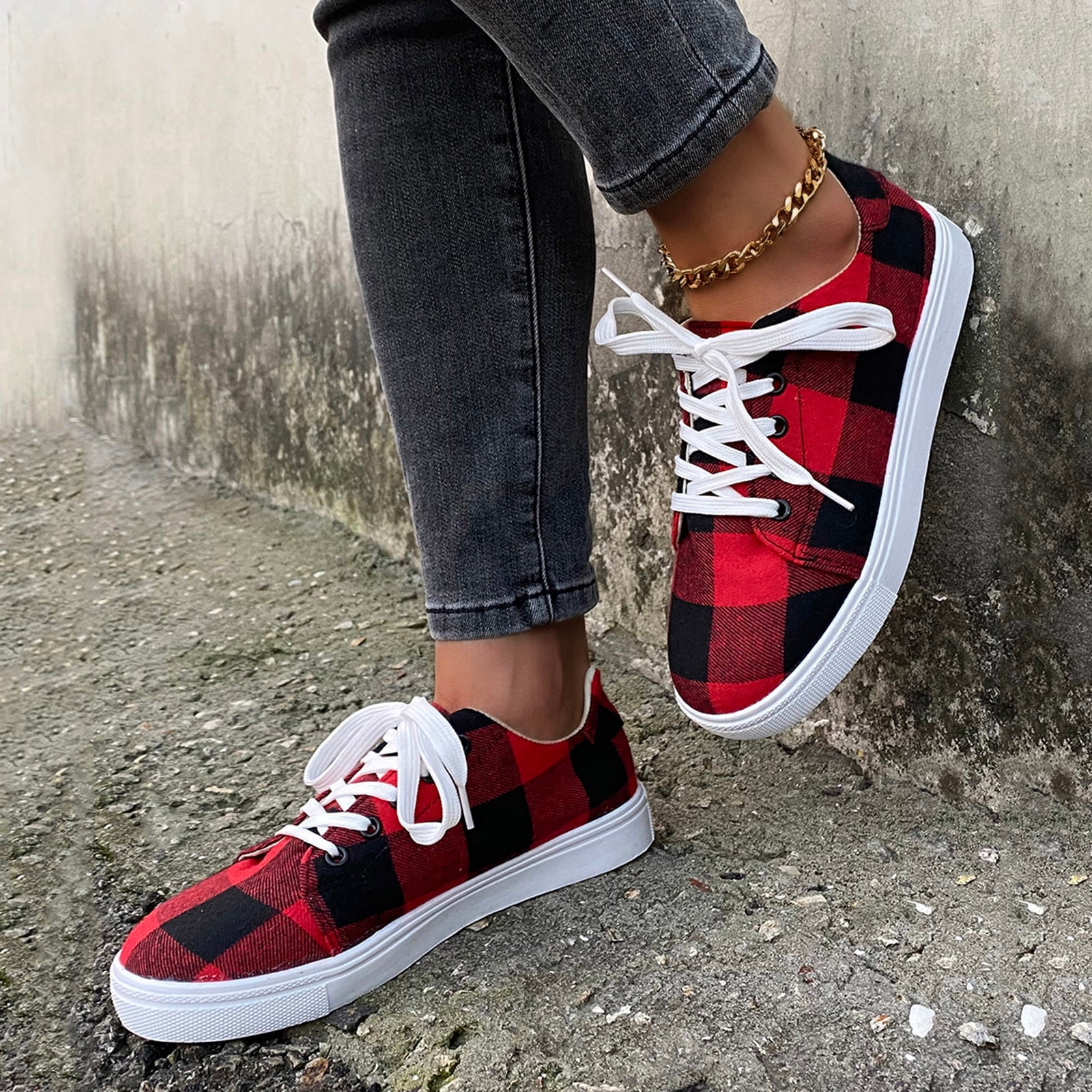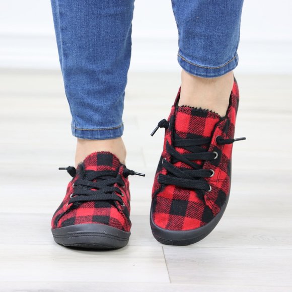 red buffalo plaid sneakers sale