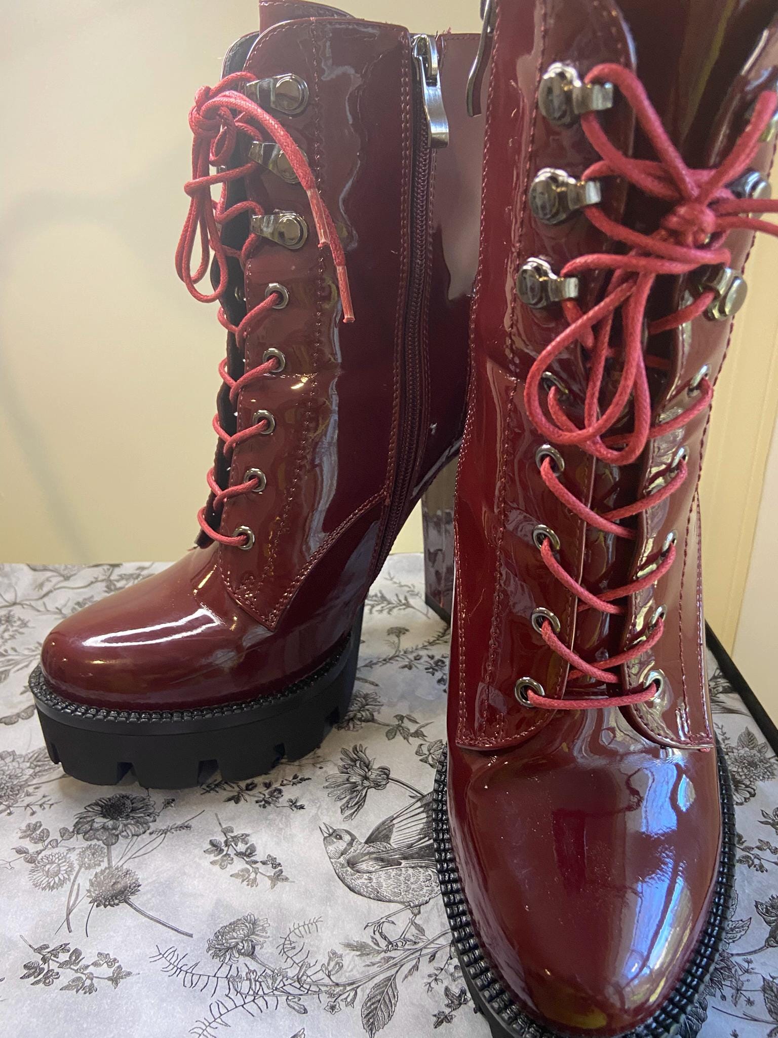 red patent lace up boots sale
