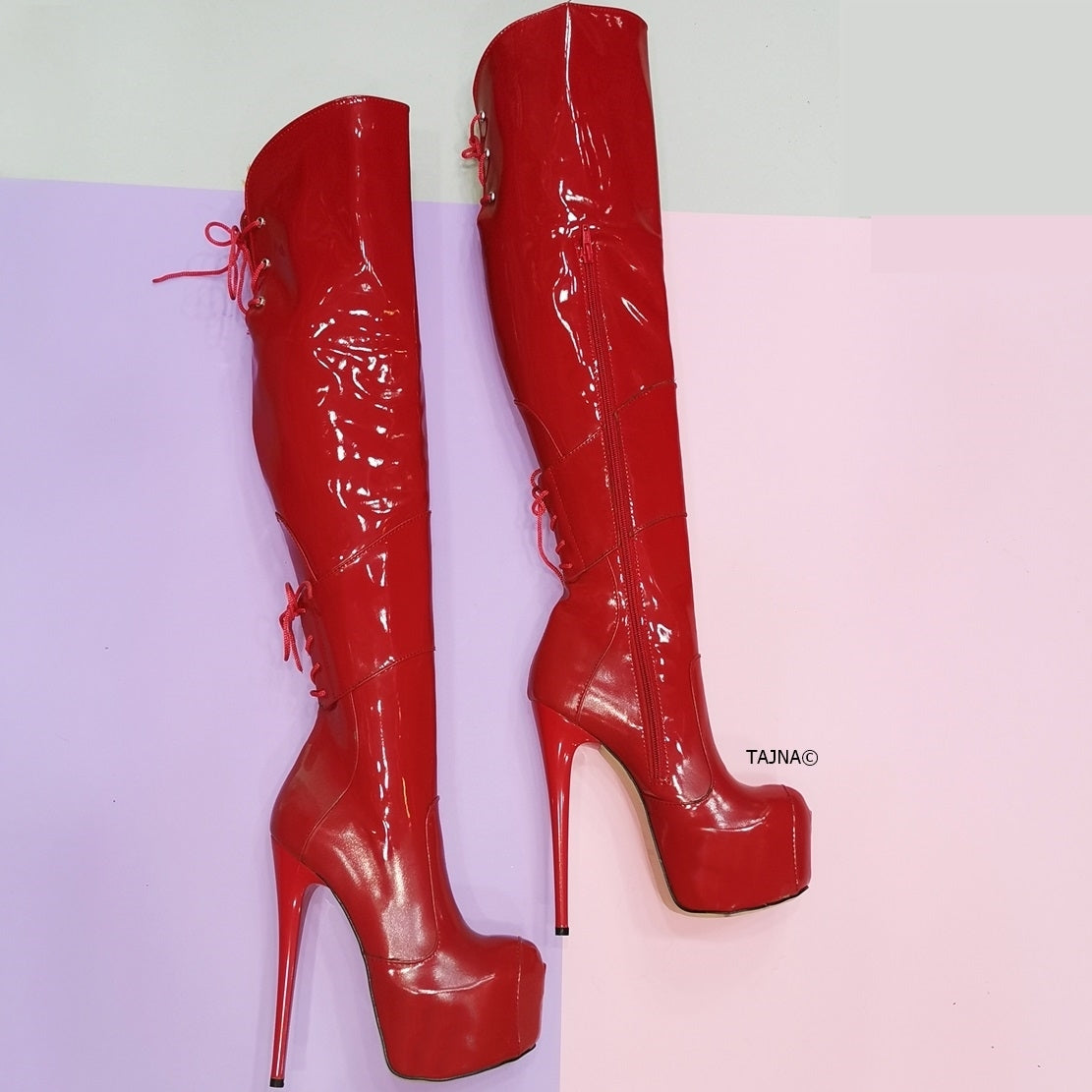 red patent leather platform boots sale