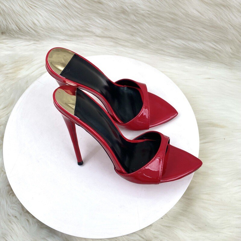red patent leather slides sale