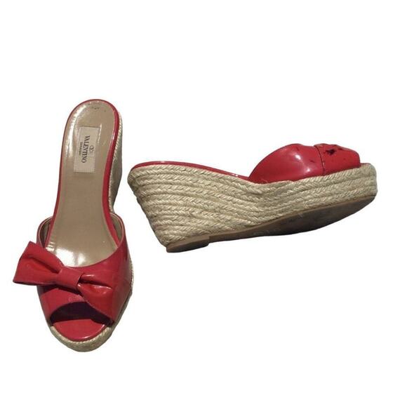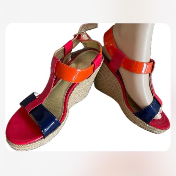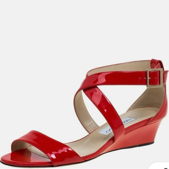 red patent leather wedge sandals sale