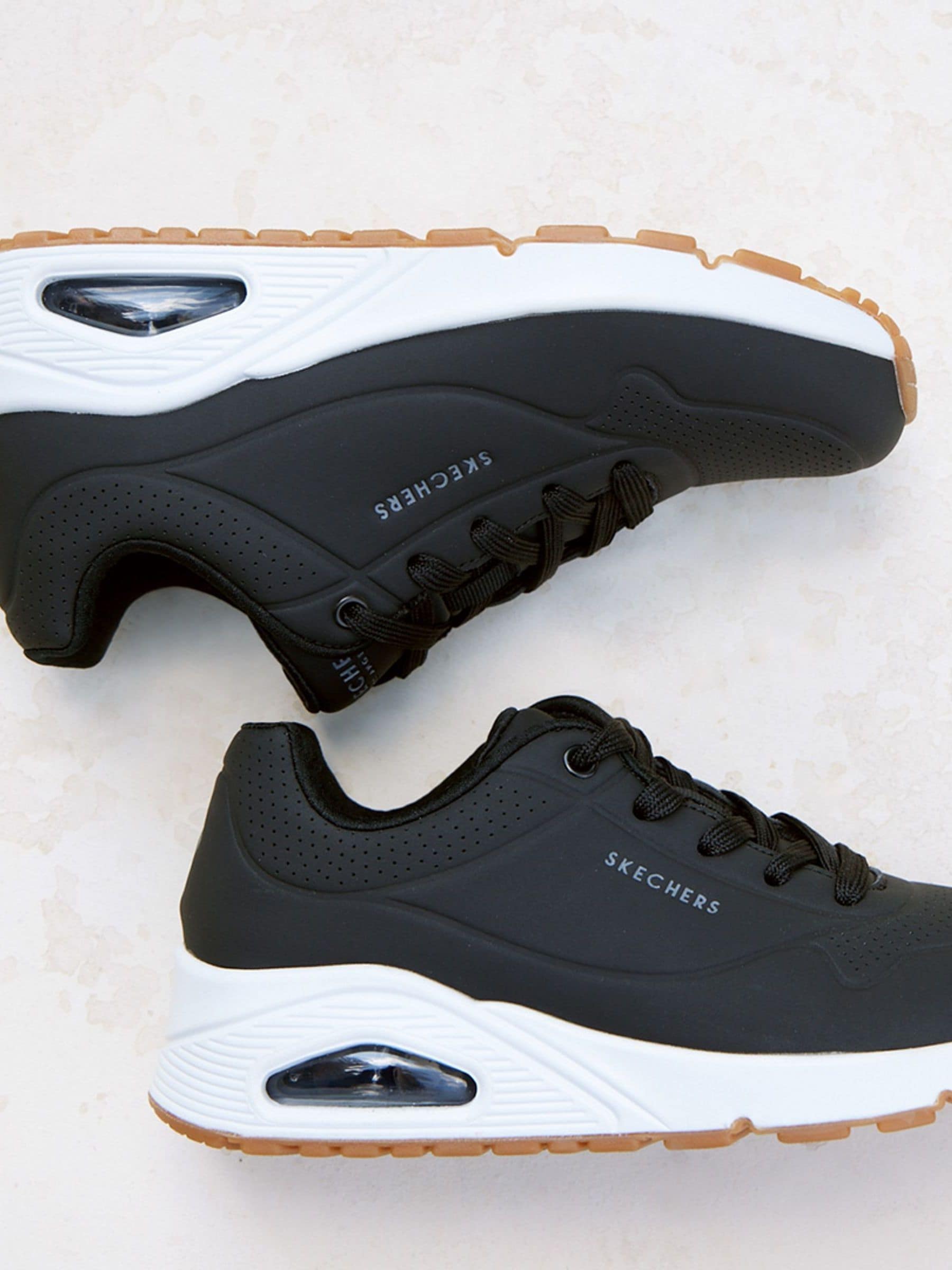 skechers black and white tennis shoes sale
