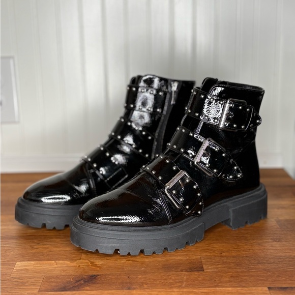 steve madden black patent leather boots sale