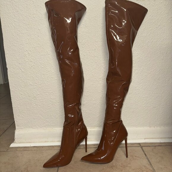 steve madden brown patent boots sale