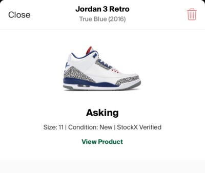 stockx jordan 3 true blue sale
