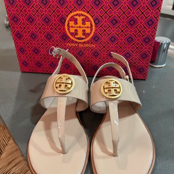 tan patent leather tory burch sandals sale