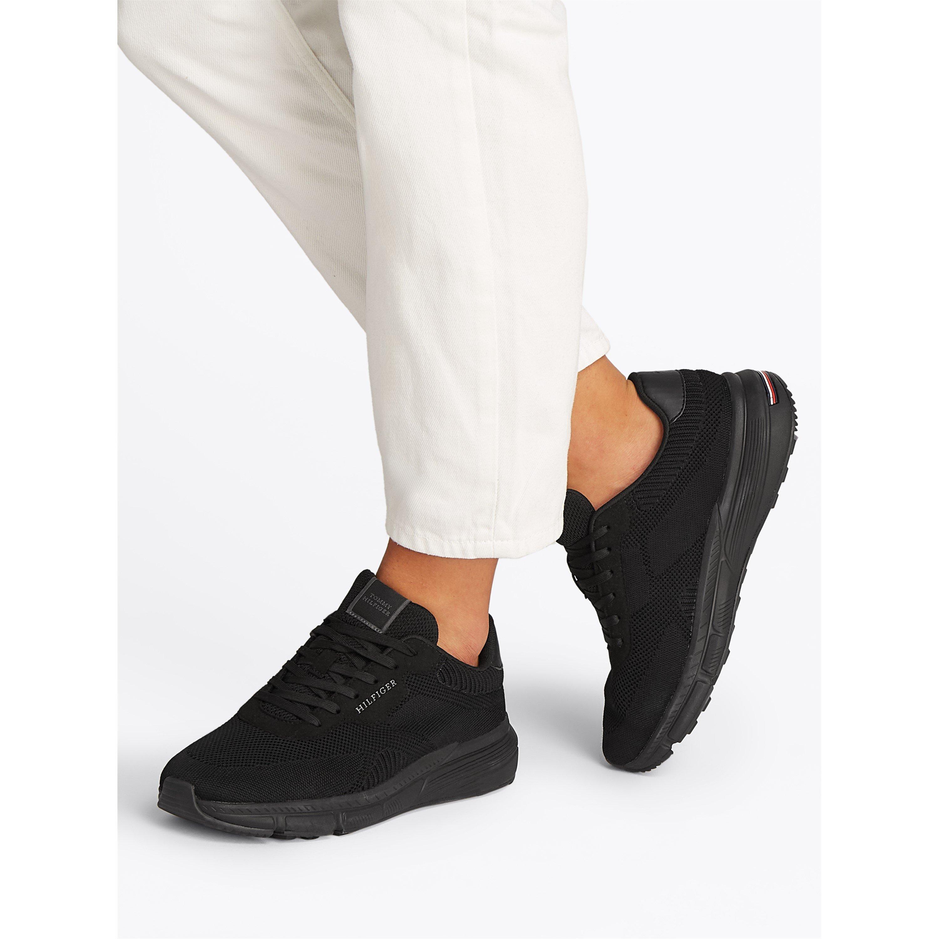 tommy hilfiger black lightweight knit runner trainers sale