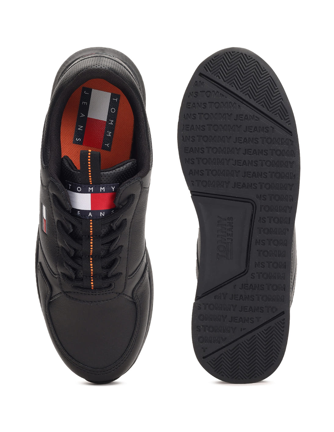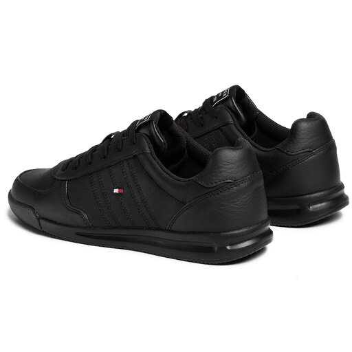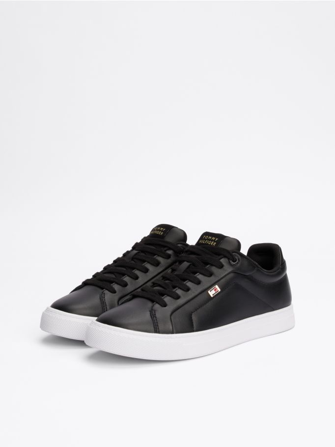 tommy hilfiger black lightweight leather flag trainers sale