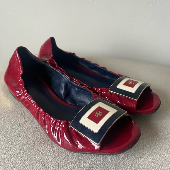 tory burch red patent leather flats sale