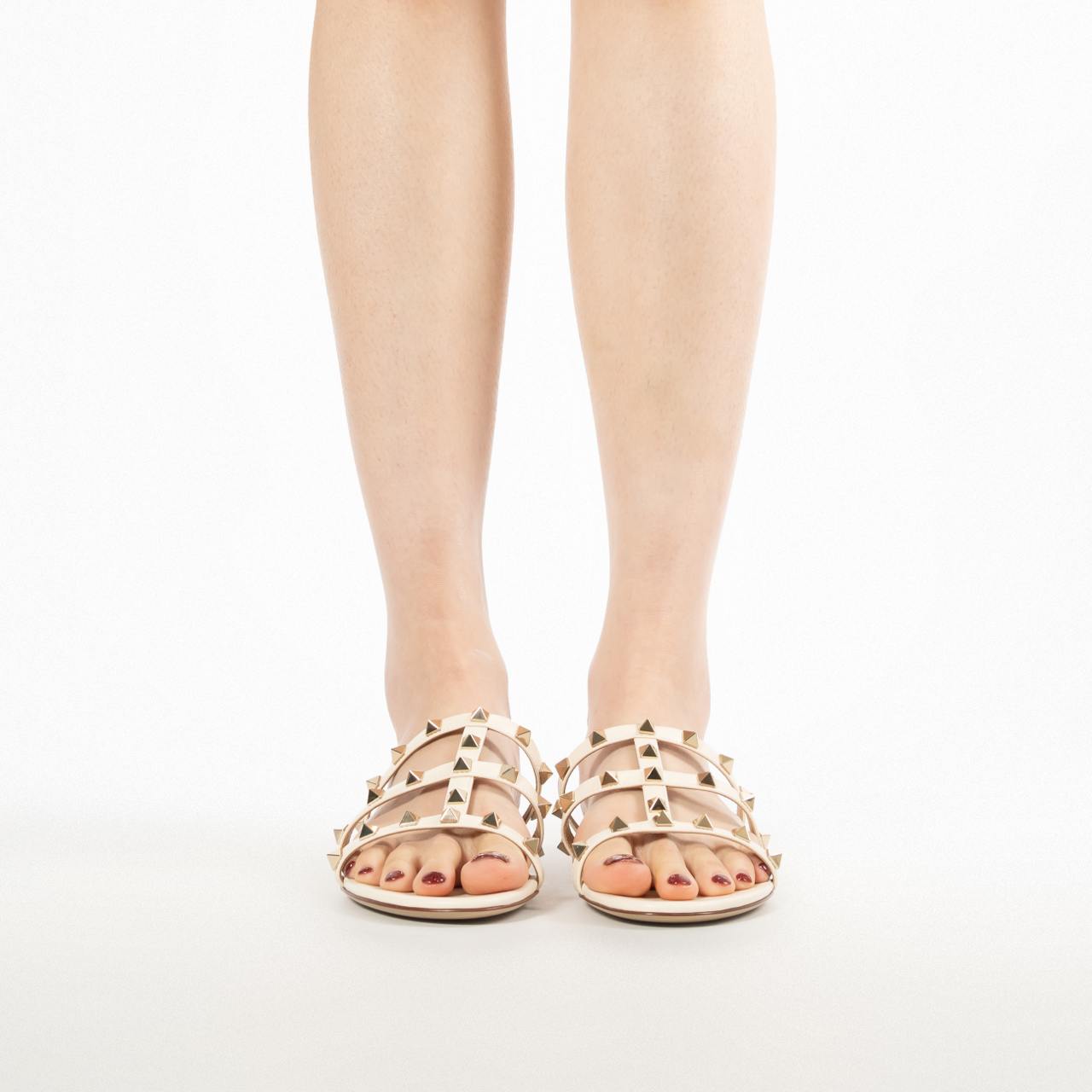 valentino garavani rockstud patent caged flat slide sandals sale