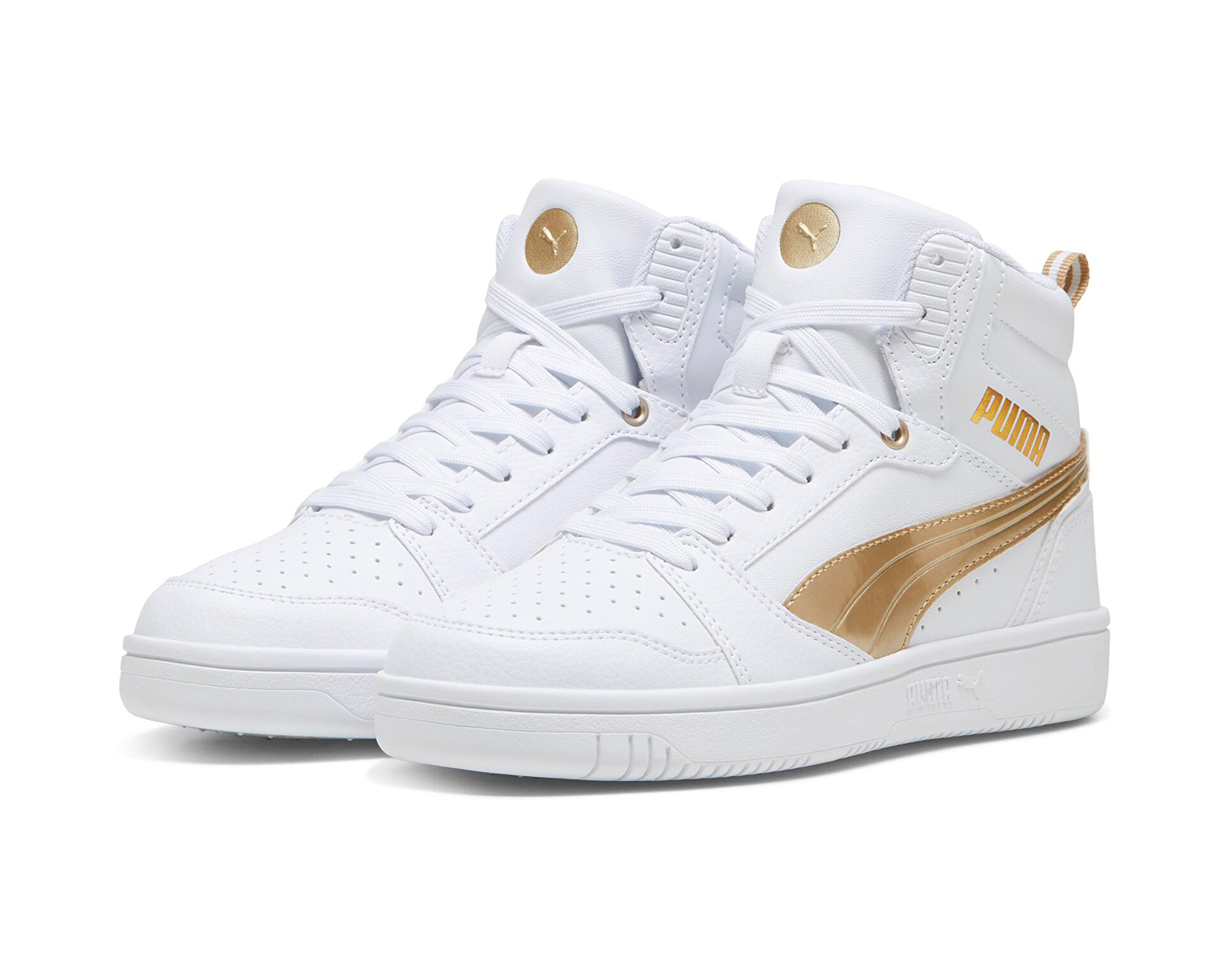 white and gold puma high tops sale