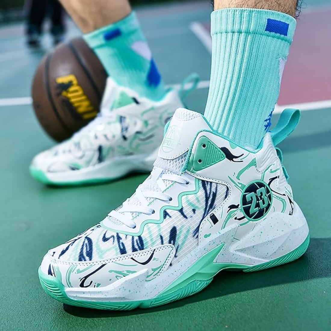 white and teal basketball shoes sale