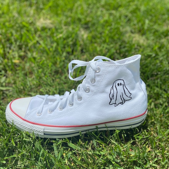 white converse high tops custom sale