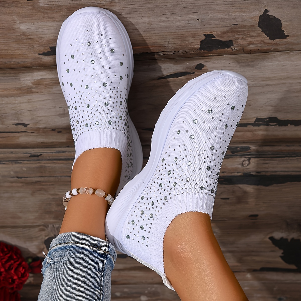 white knitted trainers women's sale