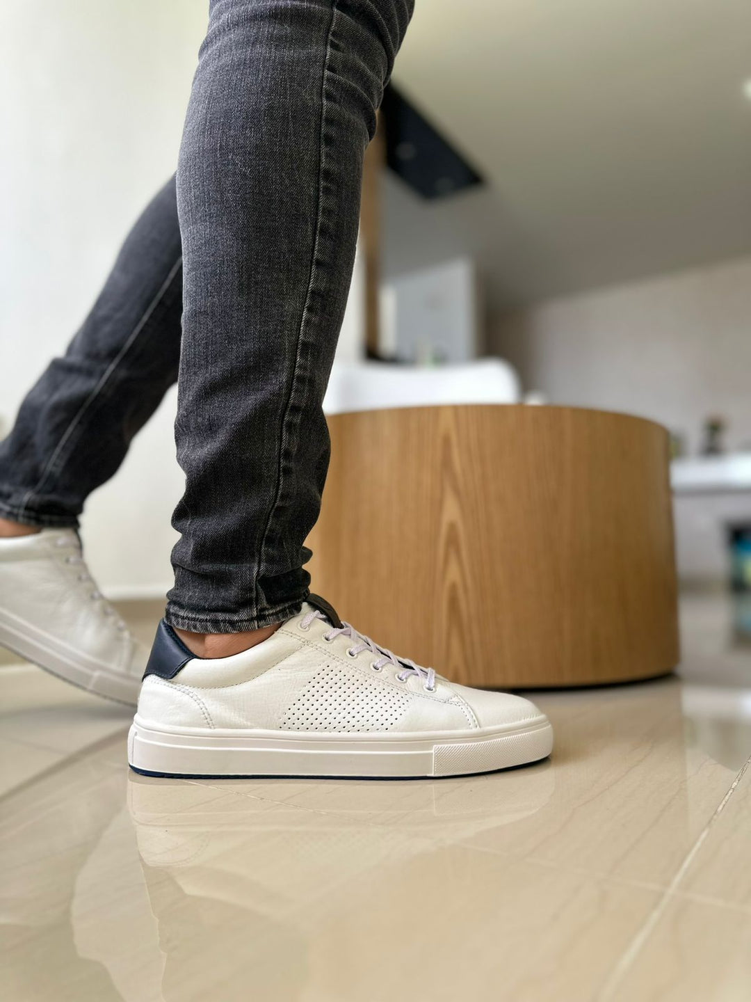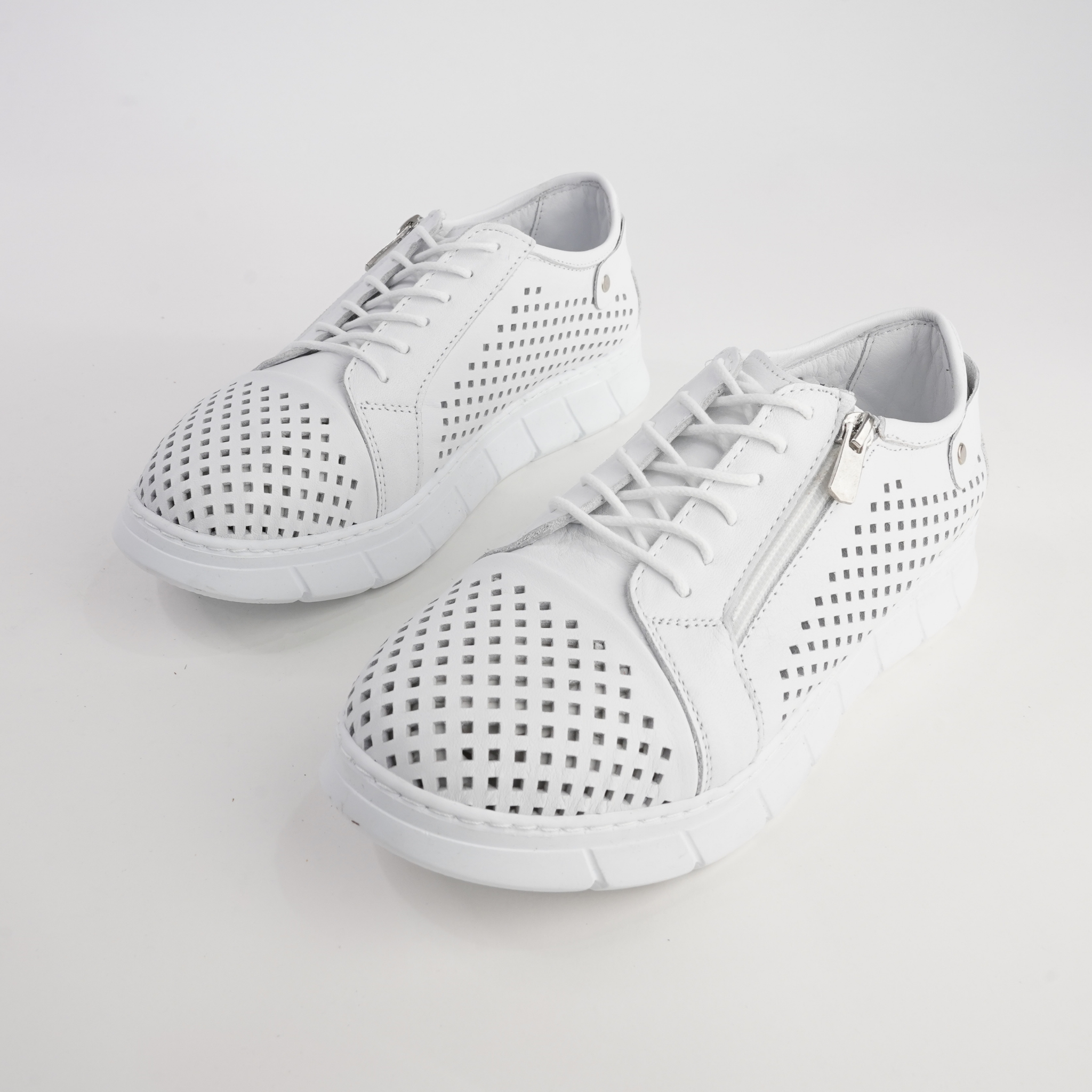 white leather perforated sneakers sale