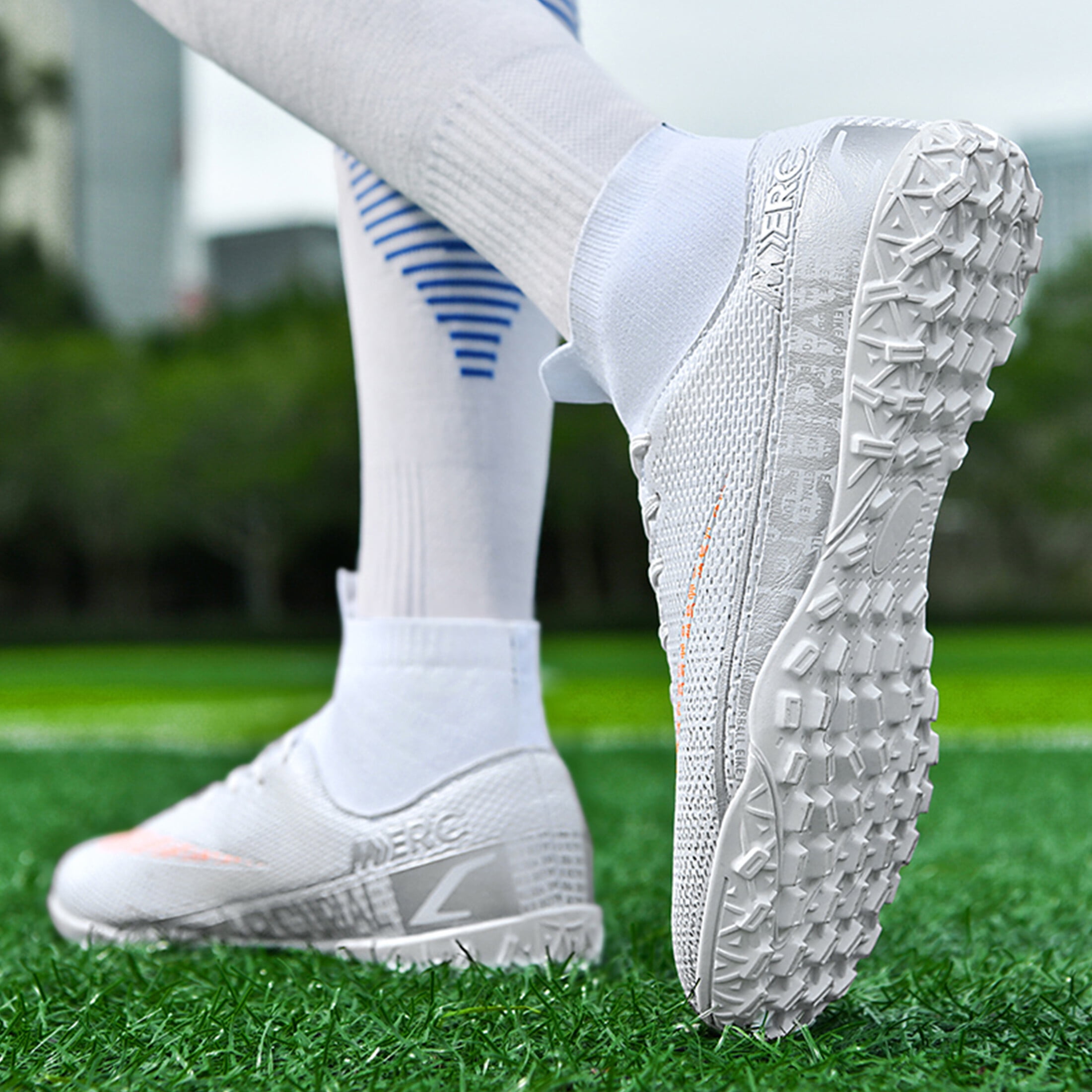 white nike soccer cleats with sock sale