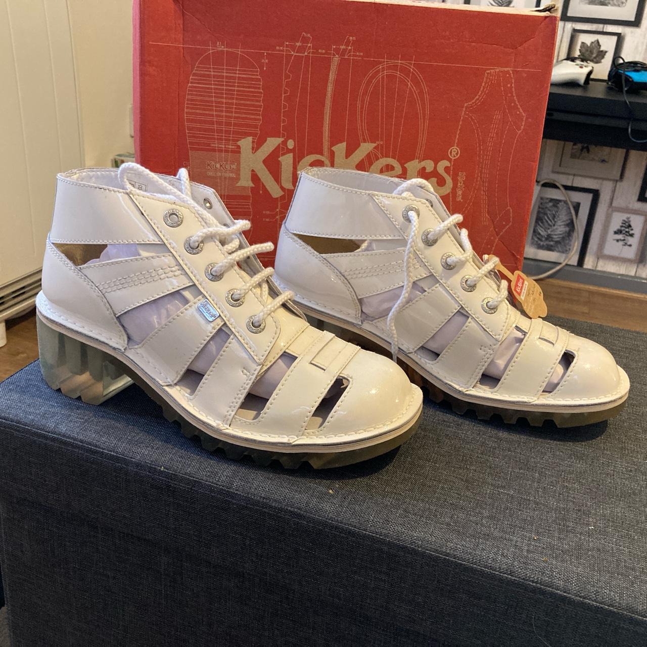 white patent kicker boots sale