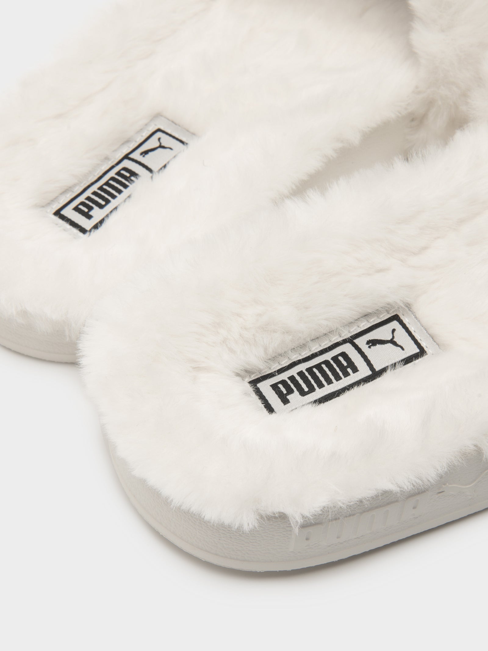 white puma slides fur sale