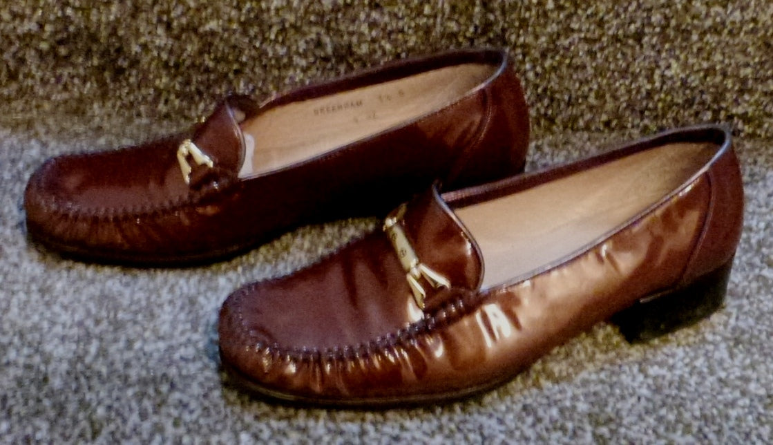 women's brown patent leather loafers sale