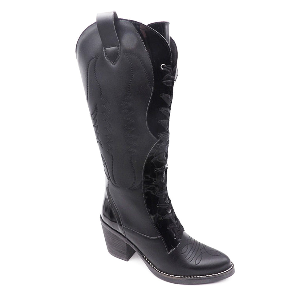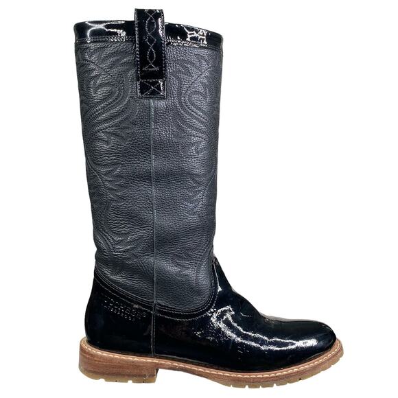 womens black patent leather cowboy boots sale